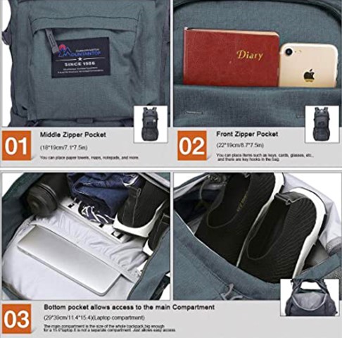- 【Well thought-out details】:There is a compartment in the main pocket designed for putting Hydration Bladder, and the Bottom compartment has direct access to main compartment so you can easily take out the items. In addition, various compression belts can additionally carry trekking poles, sleeping bags, tents and other camping equipment. (※Hydration Bladder is NOT INCLUDED).