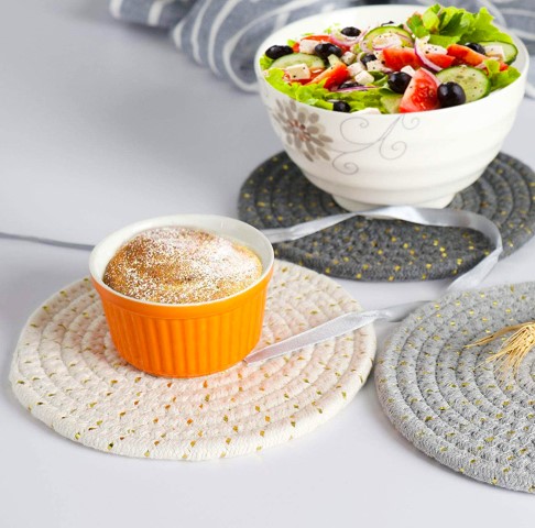 The perfect balance of form and function, this handcrafted ribbon cotton thread weave potholders set is the finishing touch your inner designer has been searching for.