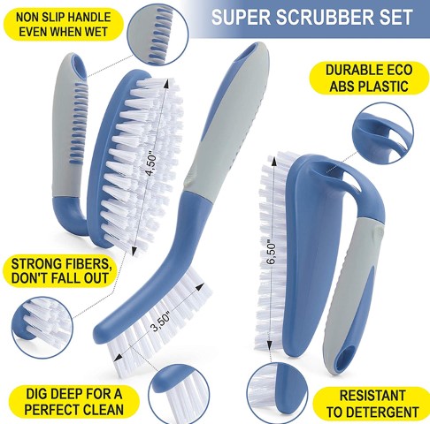 Our Scrub Brushes set are convenient for cleaning bathroom, toilets, shower, kitchen, sinks, carpet, floors, siding, pool and pavement in front of the house, ceramic tiles, and glass. Using bathroom scrubber, you can easily reach the perfect result when cleaning your appliances, sinks, and backsplash tiles. The bathroom scrub brushes for cleaning shower can reach into difficult areas and get rid of traces of water and limescale on your tiles, taps and bathroom accessories.