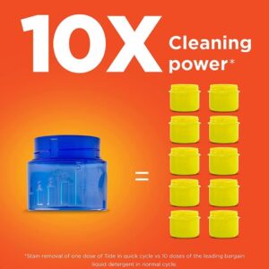 America’s #1 detergent, now even better. This Tide Liquid Laundry detergent now has 10x the cleaning power. The improved formula is reengineered to attack tough body soils. Tide HE Turbo Clean detergents feature smart Suds technology. The quick-collapsing suds clean faster and rinse out quicker, even in cold cycles. Tide HE laundry detergent keeps your whites white and your colors colorful with a refreshing scent, wash after wash. The Tide Clean you love is also available in Tide PODS laundry pacs. Based on sales, Nielsen laundry detergent Category stain removal of 1 dose vs. 10x doses of the leading liquid bargain brand Tide Smart pouch packaging makes your laundry detergent more convenient to store and really easy to use; just pour it from the pouch into an empty Tide Bottle or use it directly from the pouch using a measuring cup. Enjoy great cleaning performance from innovative packaging.